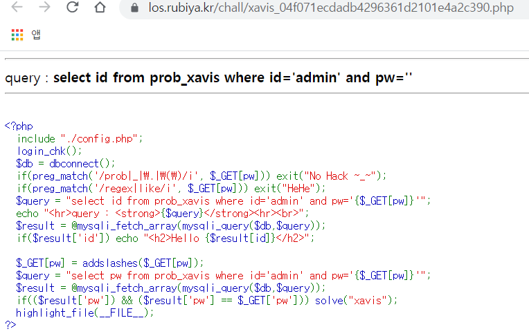 Lord of SQLInjection 19번 xavis